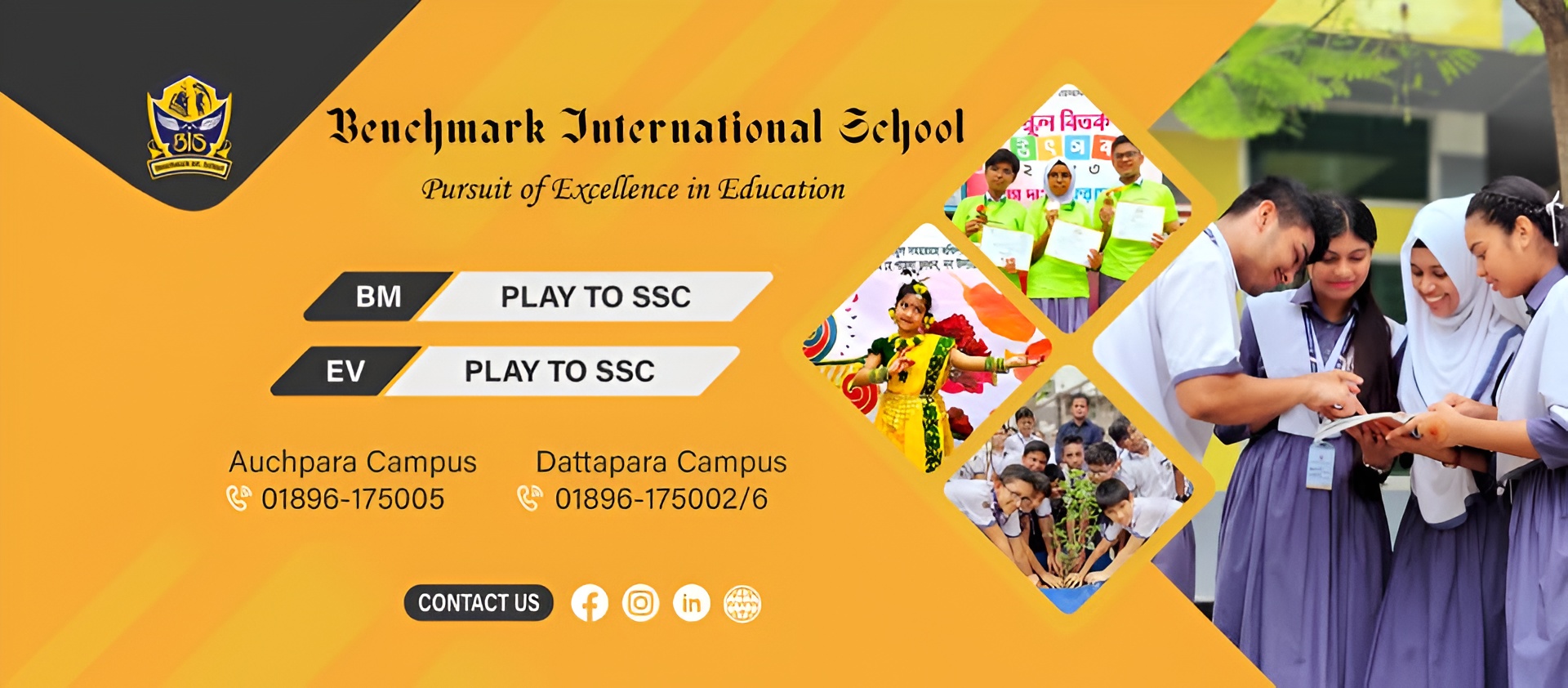 Benchmark International School is a modern educational institution located in Tongi, Gazipur. The school focuses on academic excellence, character building, and leadership development through quality education and innovative teaching methods.